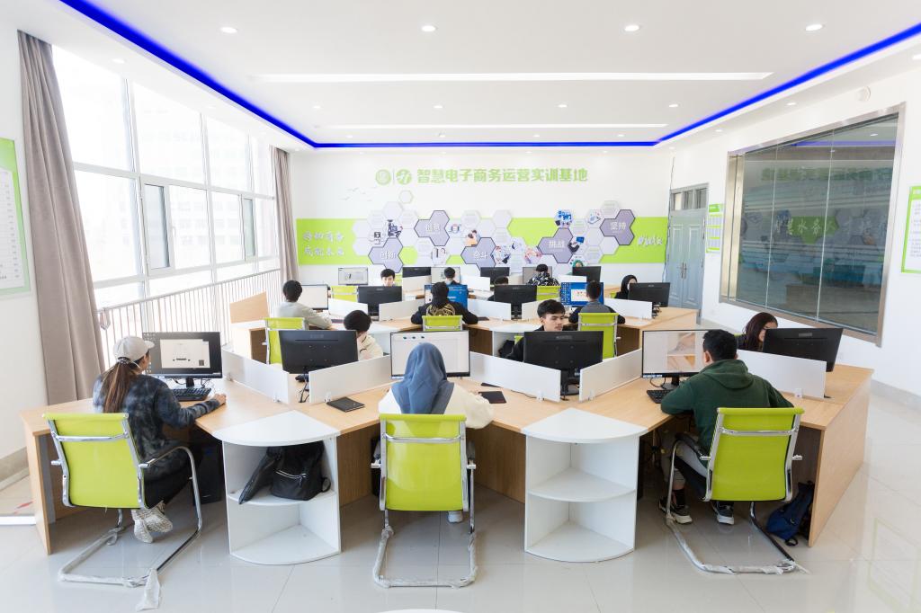 2、智能电子商务运营中心成立于2019年,建筑面积近300平,配备电脑60台、高性能服务器,主要通过B2B、B2C、O2O等电子商务运营平台,进行网店运营、视觉设计、搜索引擎优化、新媒体运营等教学和实训。该中心可用于学生电子商务运营竞赛培训、创业项目孵化等。