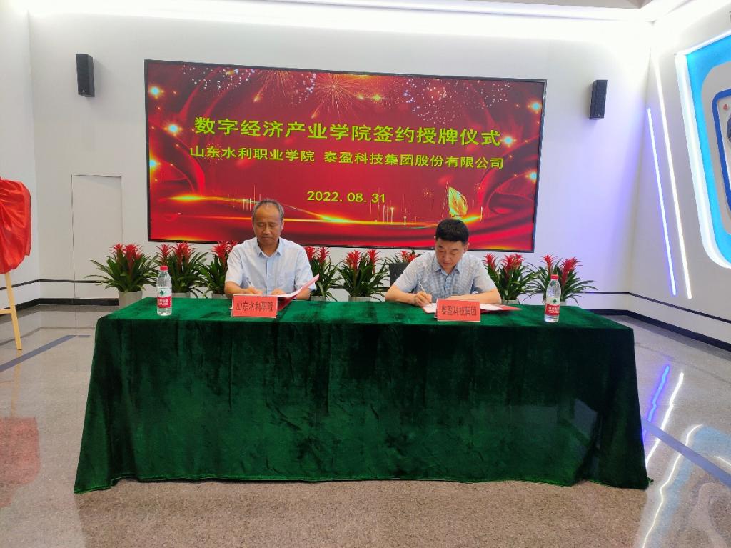 8月31日上午,我校与泰盈科技集团股份有限公司共建数字经济产业学院签约揭牌仪式在日照高新智慧谷举行。学校党委委员、宣传部部长刘秋生,商务管理系主任秦承敏,泰盈科技集团股份有限公司(以下简称泰盈科技集团)副总裁杨晓,校企部总经理张明等校企双方相关负责人出席仪式。仪式由秦承敏主持。