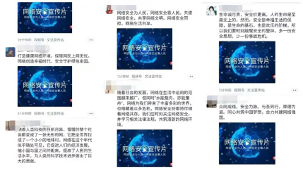 开展线上宣传活动。网络安全宣传周期间,发动学生参与网络宣传,将网络安全宣传片转发至QQ、微信等媒介,以此提高同学们网络安全防范意识和防护技能,呼吁广大师生共同构筑网络安全防护墙。