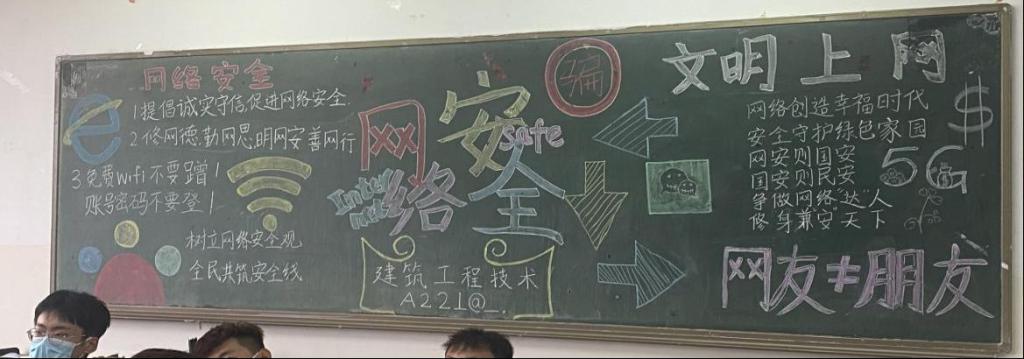 绘制网络安全宣传板报。各班级绘制以国家网络安全宣传为主题的黑板报,时刻提醒学生自觉维护网络安全。