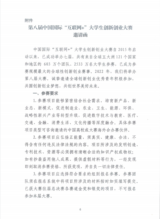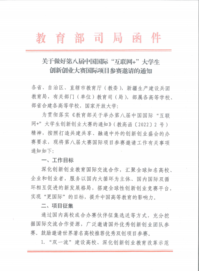 关于做好第八届中国国际“互联网+”大学生创新创业大赛国际项目参赛邀请的通知